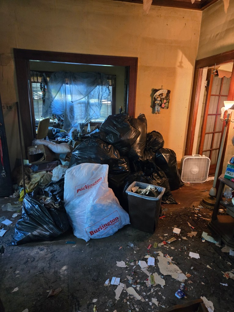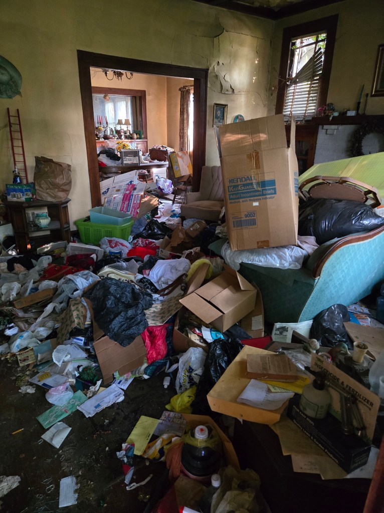 The living room was not as bad as the hallway. Less foodstuff. And everything was less compacted. I managed to clean it out in just under two hours.